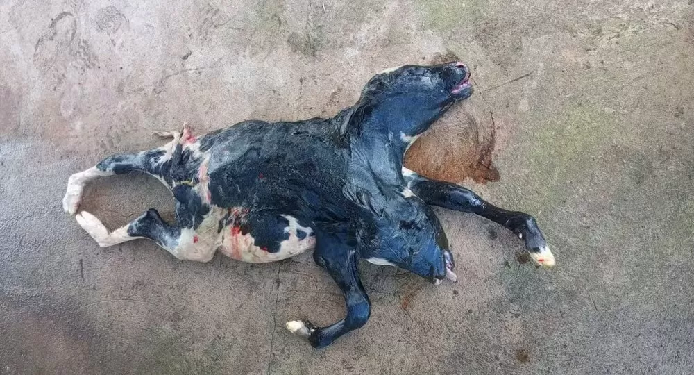 Bezerra com duas cabeças nasce morta em propriedade rural de São Miguel do Guaporé