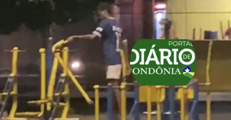 Uma testemunha gravou o momento que o indivíduo bastante transtornado quebrava os aparelhos de educação física e acionaram a PM.