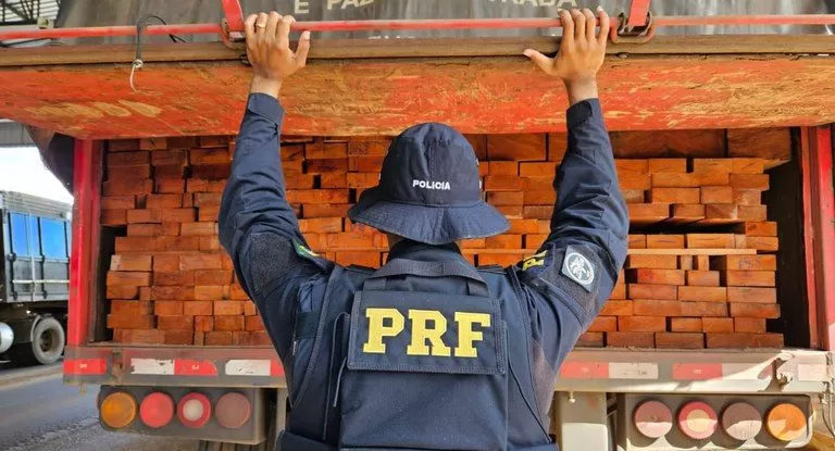 Polícia Rodoviária Federal em Rondônia, no final de semana, apreendeu mais de 45 metros cúbicos de madeira